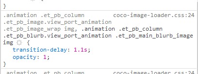 It lists all the CSS for this image, such as transition-delay and opacity. And it also tells us that this very code is located inside the coco-image-loader.css at the line 24.