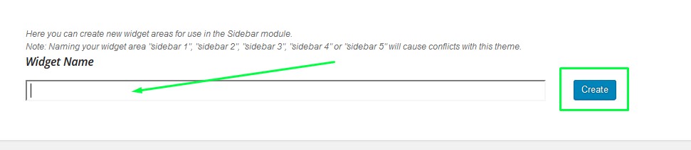 To add new widget area, simply use the form shown in the screenshot. Type in the widget area name and click *a create *button.