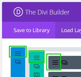 On the screenshot below, marked green are the settings buttons that you can click to access the settings. First one (blue) is the section, followed by row (green), and module (grey).