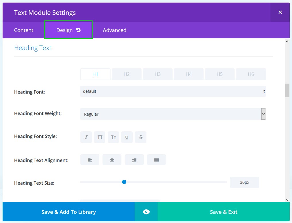 The tab that you are going to use most of the time. Good part of the design for any module is set here. Settings are different from module to module, but generally, here you can change text colour, size and style, background colours, module width and margins, other options that are specific to the particular modules, and even add animations and more. In other words, pretty much all the design is here.
