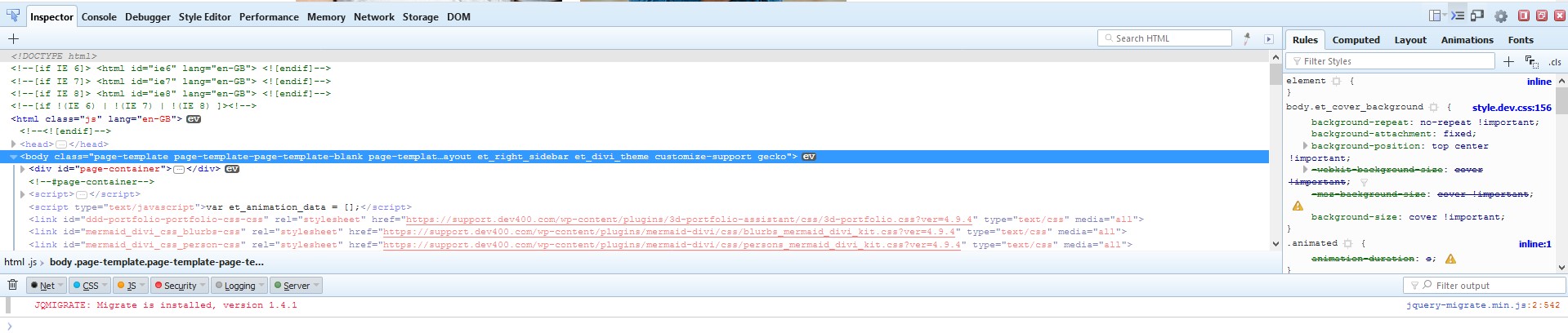 It will display the CSS assigned to that element, and also where it is located. How nice! And here is how to read that information. See this two examples:
