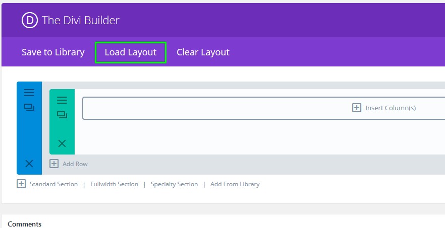 Note: Load Layout option is for loading complete page layouts, if you want to load only individual sections/modules, click Add From Library.