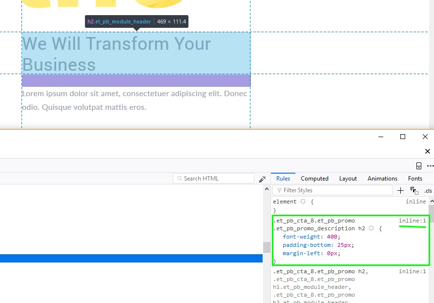 Note: Never update plugin core files. Otherwise, with each plugin update, your changes will be lost. Instead, override the CSS by adding it to the theme options or child theme stylesheet.** Example 2Sometimes, instead the file name, it just says "inline" as in this example. What this means is that the CSS is not written in any external CSS file, but it's all in the element settings. So, if I would like to edit this text selected on the screenshot, I'd go to the text module settings and do it there.