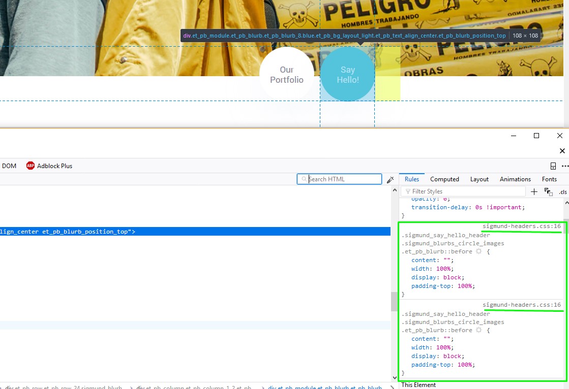 In the example below (Say Hello Header), when this blurb's before pseudoelement is selected, I can see this: