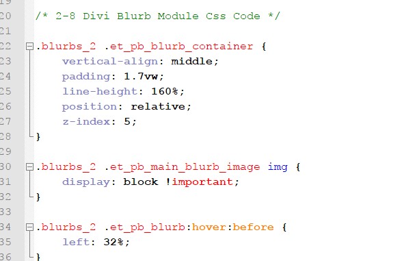 - 2-8 Divi Blurb Module**, you should find it in the CSS. *The whole file is well commented and you can use the search to find it.