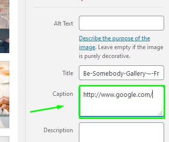Use the caption box to add your custom URL: