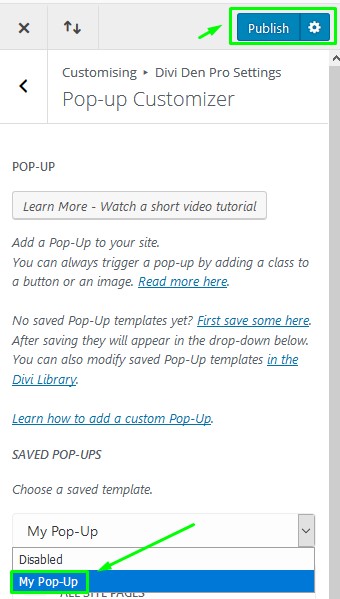 ToggleDivi Den Pro, then togglePop-up Customizer**.