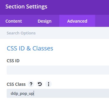 For the CSS class, type: ddp_pop_up