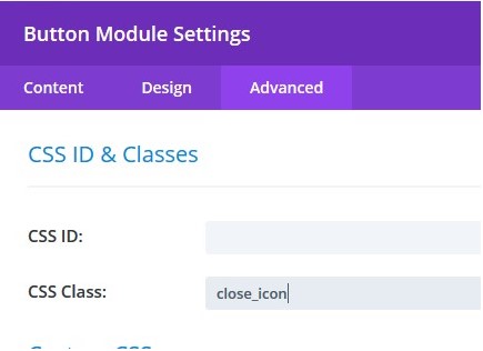 - 2. *Allow your visitors to close the pop-up by clicking the close button. To do this, create a button module, go to settings, select Advanced tab, and add this class: close_icon