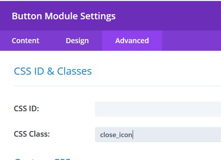 Go to Button module Advanced settings and assign a class: close_icon
