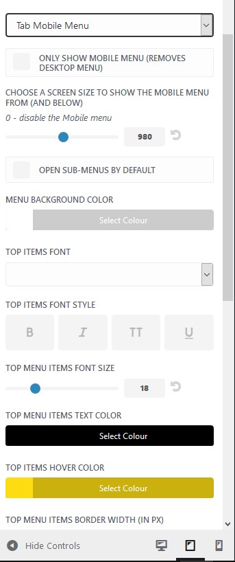 Each menu can be fully customized. You can change all colours and fonts. You can choose to display the mobile menu even on desktop, or set a breakpoint.