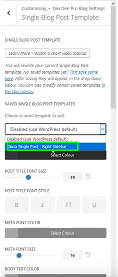 ToggleDivi Den Pro Blog Settings>Single Blog Post Template.