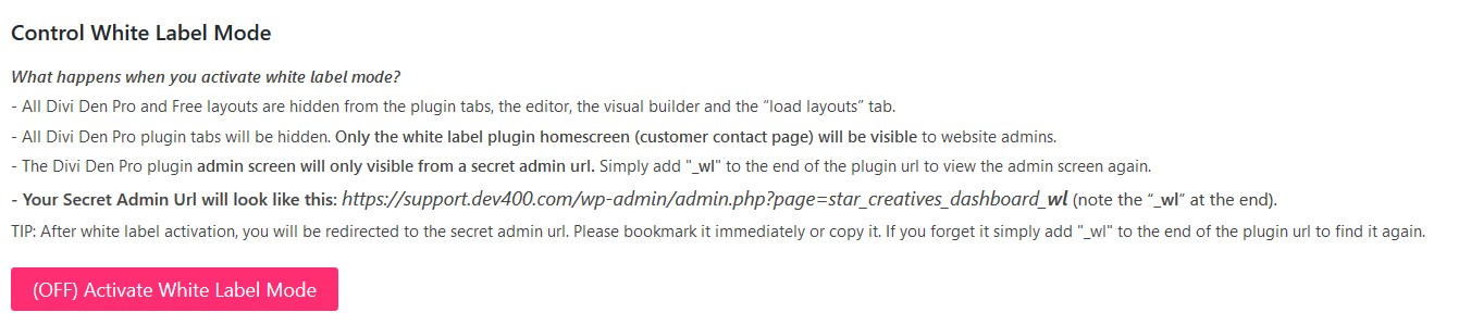 Anyone who owns the Divi Den Pro plugin and wants to know how the white labelling option works.