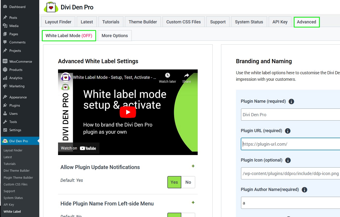 Time to complete**: 5+ minutes The Divi Den Pro plugin lets you brand the plugin as if it is your own. That means you can build unlimited websites and your hard work is always protected. You are the only point of contact for your clients.