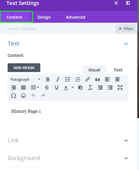 To update the content of this module, such as the title or the paragraphs, I can do that from the first tab, the Content.