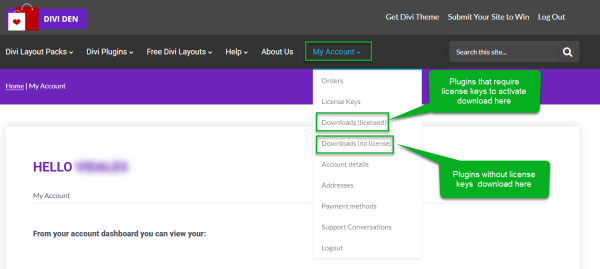 Solution When you go to theMy Accountmenu item, you will notice 2 " Download"** sub-menu options. One forlicensed productsand one for products that don't require a license**.* Depending on what product you purchased, you will find download links on one of these two pages. See screenshot below.